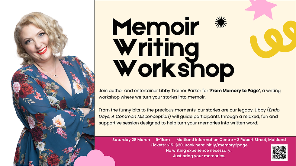 Honoured to be a guest speaker at the Yorke Peninsula Endometriosis Awareness Luncheon at Yorke Valley Hotel in Maitland, Libby has also booked some space at the Maitland Information Centre to run a two-hour workshop, sharing her knowledge of memoir and storytelling.